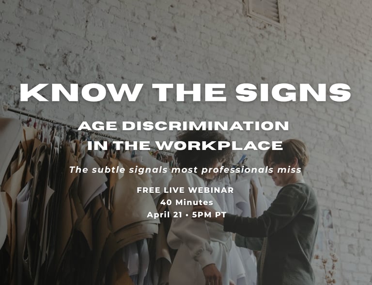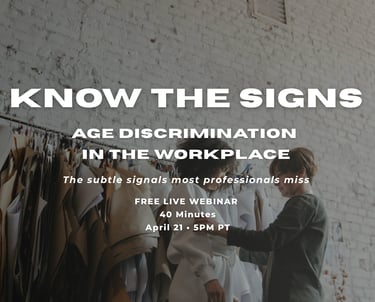 In this webinar we will break down the early warning signs of age discrimination that many professionals overlook until it is too late.